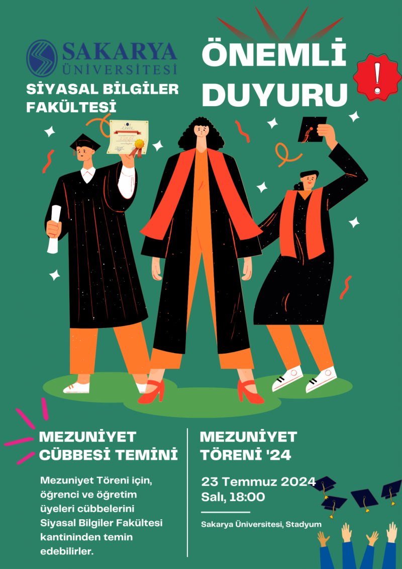 Mezuniyet töreni için ihtiyaç duyulan cübbeler, öğrenci ve öğretim üyeleri tarafından Siyasal Bilgiler Fakültesi kantininden temin edilebilecektir.
